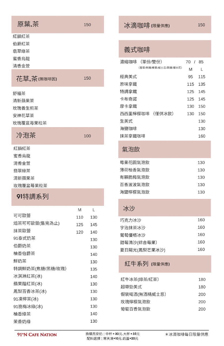 【有營業】91N CAFE NATION 林口『外帶店』 Menu